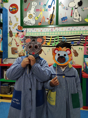 Gracias a la profe Sara, Pt del departamento de Orientación, por la divertida sesión de teatrillo que compartieron con los peques de infantil durante la que, además de conocer la historia del león y el ratón, pudieron crear sus propias máscaras y escenificarla ellos mismos. ¡Lo pasamos genial!