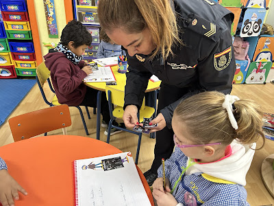 Hemos recibido una visita sorpresa: una agente de la Policía nacional. Ha venido a traernos pegatinas y recordarnos que la Policía es nuestra amiga y que siempre está ahí para ayudarnos y protegernos. Por eso, nos invita a conocer el coche patrulla y las motos de los policías. Próximamente haremos una salida didáctica para descubrir el emocionante mundo de la Policía.